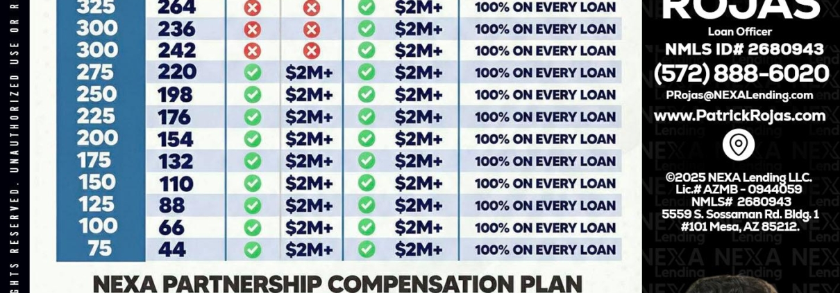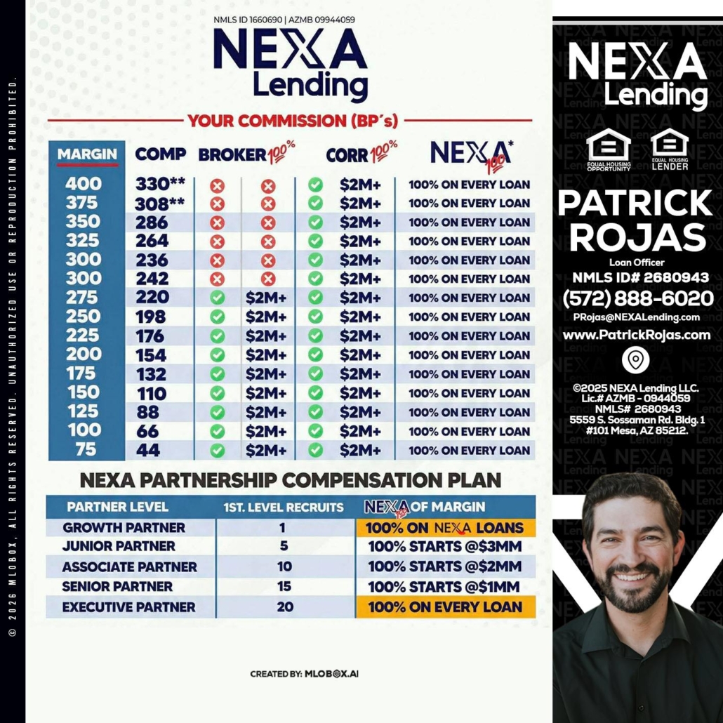 COMP - Patrick Rojas -Loan OfficerHi, my name is Patrick Rojas. I’m a Loan Officer with NEXA Lending LLC., offering personalized mortgage solutions, fast customized quotes, great rates and service with integrity.