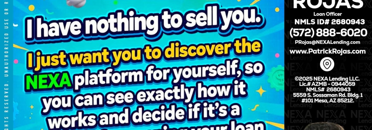 Hi, my name is Patrick Rojas. I’m a Loan Officer with NEXA Lending LLC., offering personalized mortgage solutions, fast customized quotes, great rates and service with integrity.