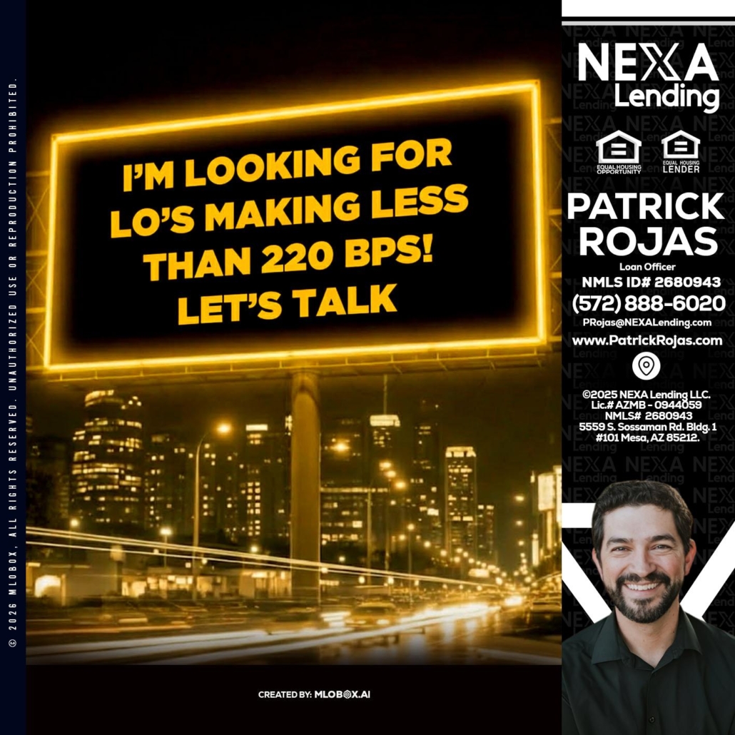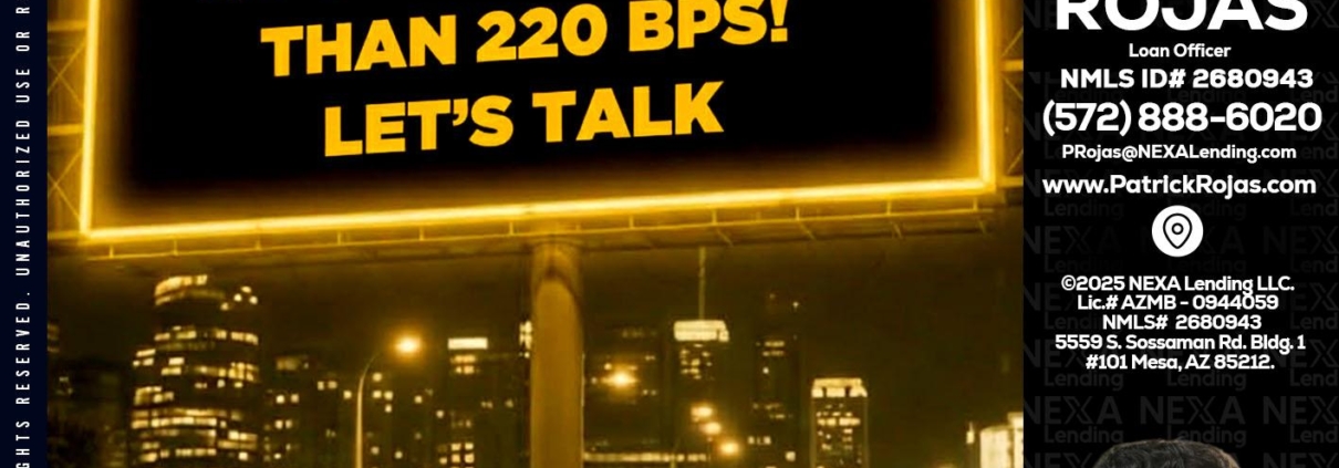 Hi, my name is Patrick Rojas. I’m a Loan Officer with NEXA Lending LLC., offering personalized mortgage solutions, fast customized quotes, great rates and service with integrity.