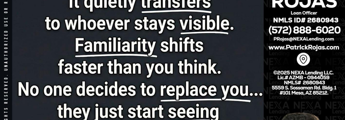 STOP SHOWING - Patrick Rojas -Loan OfficerHi, my name is Patrick Rojas. I’m a Loan Officer with NEXA Lending LLC., offering personalized mortgage solutions, fast customized quotes, great rates and service with integrity.